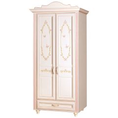 Фурнитура: ручки металлические под золото с белыми вставками под эмаль, направляющие - шариковые полного выдвижения, ножки пластмассовые на металлической опоре, петли, амортизаторы ударов, штанга для одежды в комплекте