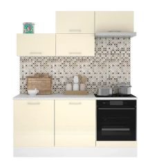 Кухонный гарнитур Люкс 1800 Ваниль глянец (модульный) Горизонт
