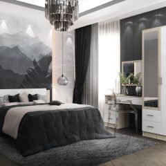 Спальня Соната Кровать (сп/м 1600*2000мм), ЛДСП Дуб юкон /ЛДСП Белый+к/з Милк НАСТИЛ