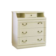 Набор выполнен с использованием древесины бука (цоколя), ольхи (рамы шкафа, тумбы, кровати), плиты МДФ облицованной шпоном дуба (фасад), шпоном бука (крышки, стенки боковые). Фурнитура: ручка-кнопка фирмы «GIUSTI» (Италия), направляющие TANDEM частичного выдвижения производства фирмы Блюм (Австрия). Отделка: лак — на водной основе, вариант цвета – «графит» или «альба»