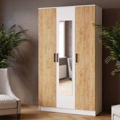 ЛАРС Шкаф комбинированный 1,2 с зеркалом Белый/ Дуб крафт золотой